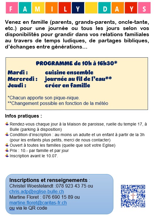 Pour plus d’informations : chris.adp@eglise-bulle.ch / 078 923 43 75.